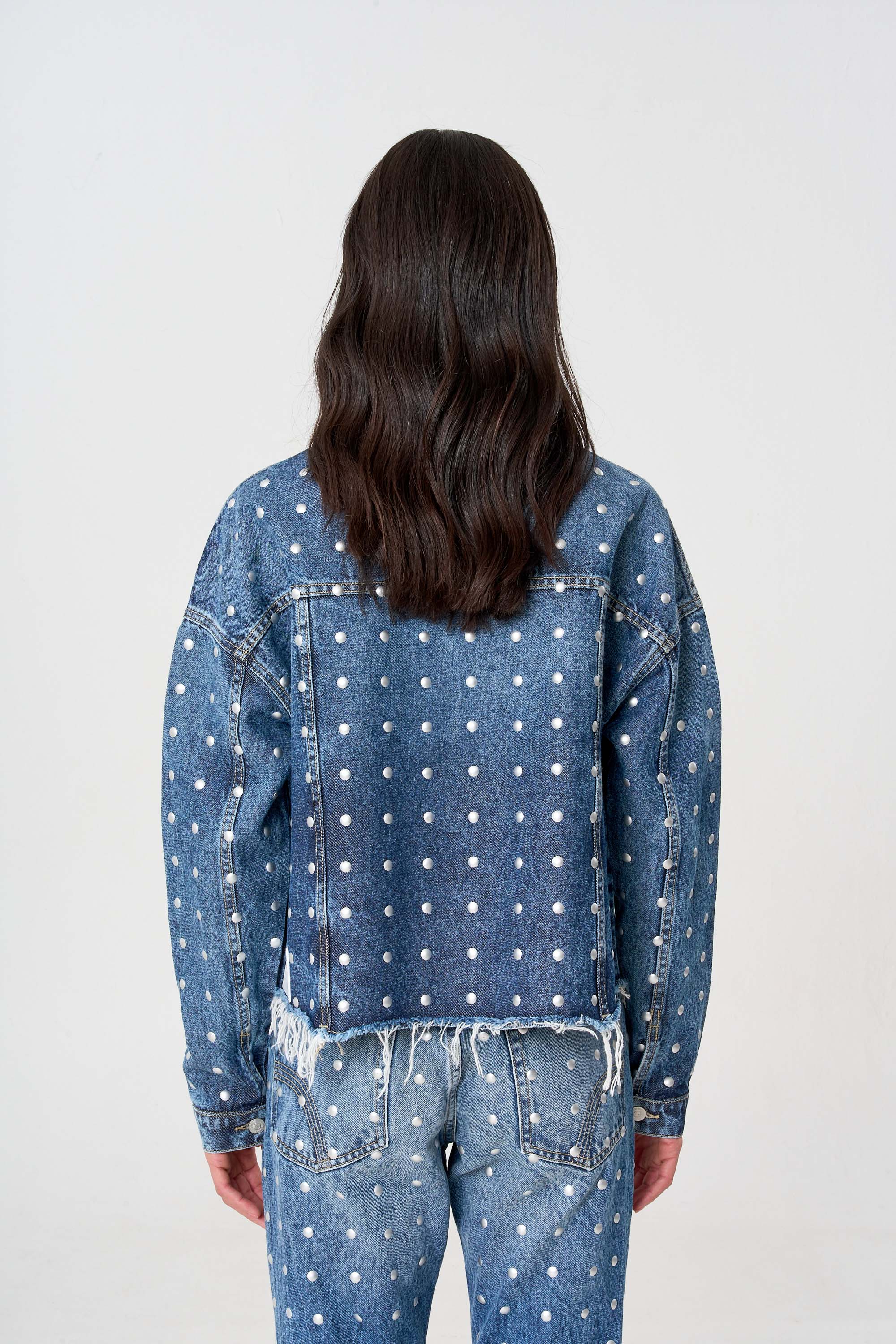 Medium-tone jacket with all-over matte silver studs. Button closure. Made of 100% cotton.